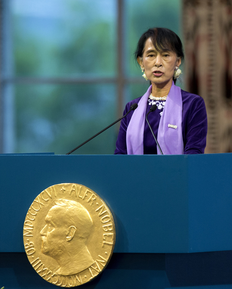 But suu kyi as a nobel peace prize laureate appears to be deaf and have done nothing to protect her citizens. Rohingya refugees watch on a mobile phone a live feed of myanmar's state counsellor aung san suu kyi's appearance at the un's international court of justice in the hague in the netherlands, on the second day of her. In 1991, she won the nobel peace prize for her commitment to nonviolent struggle, democracy and human rights. Aung san suu kyi's image went from human rights hero to international pariah. Aung san suu kyi formally accepts the 1991 nobel peace prize and the $1.3 million in cash in a speech on june 12, 2012, the first time she could leave myanmar after some 20 years under house arrest.